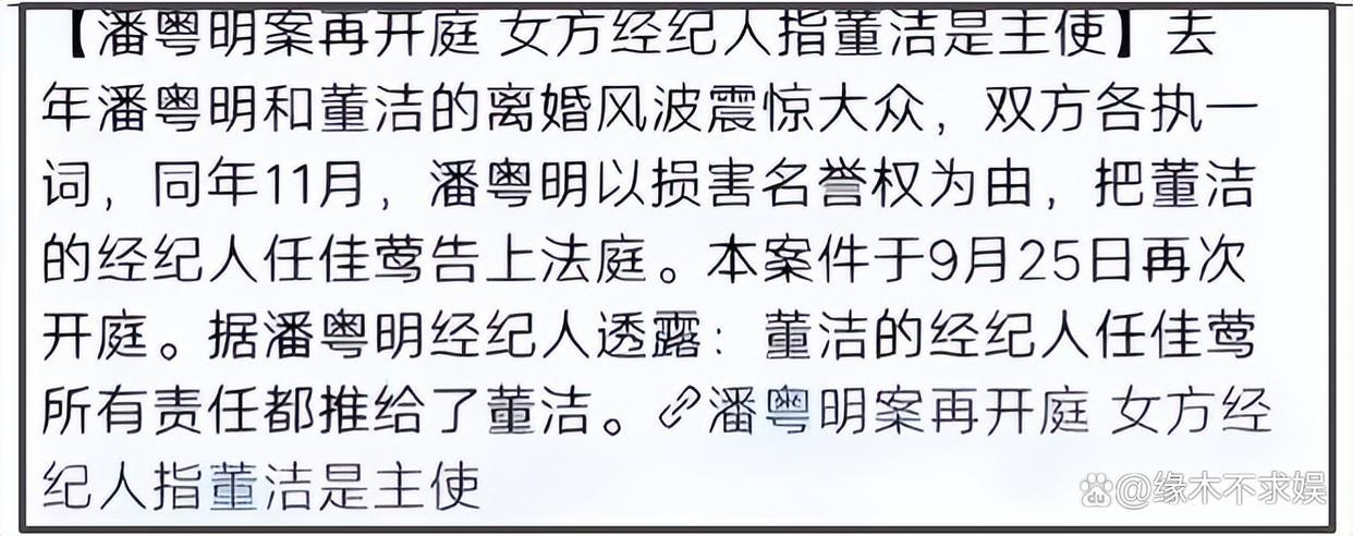 对于董洁的指控,潘粤明也发长文回应了,认为这是污蔑。但他依旧不愿和董洁对薄公堂,只是将董洁经纪人告上法庭,法庭上经纪人把锅都甩给了董洁。