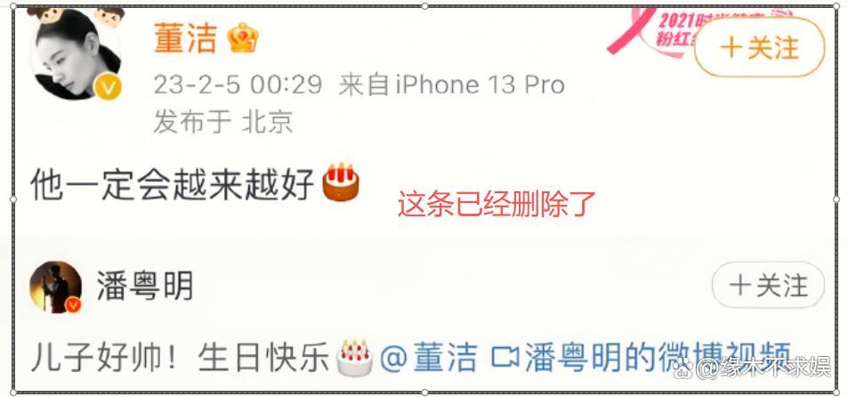 不过眼尖的网友发现,董洁居然把和潘粤明和解的动态删除了。2023年,潘粤明为儿子庆生,董洁转发配文“他一定会越来越好”。如今这条动态已经删除,连对儿子未来美好的祈愿都能删除,看来董洁这次和潘粤明闹得很僵了。