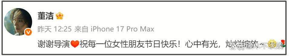冲上热搜,董洁没有回应,只回复了导演的祝福,称要“心中有光,灿烂绽放”。